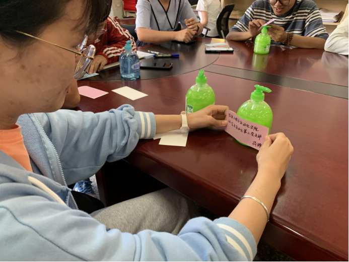 研究生自动化第三党支部书记王标极主持了本次活动,支部25名党员参与了本次活动。支部实现征求了所有党员意见,最终确定实事内容为打扫信自楼卫生,具体落实措施为:党员同志以身作则爱护公共环境卫生,打扫卫生间洗手台,放置洗手液并粘贴标语。支部采购了洗手液与标签纸,每位党员根据实际情况参与标语书写并粘贴于洗手液上,根据党员所在实验室就近洗手间放置了洗手液。以此提醒学院师生注意公共卫生,保持个人卫生,营造良好的学习工作环境。