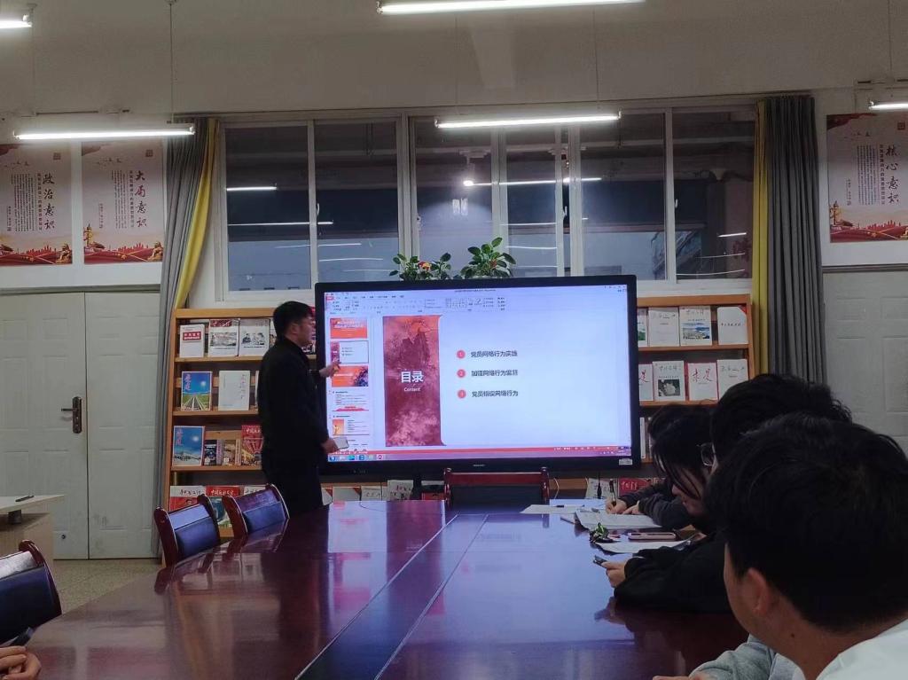 2024年3月22日晚上19:00,研究生第十党支部在信自235上召开了“学习《中国共产党党员网络行为规定》”主题党日活动。全体党员同志积极参与使得会议顺利完成。