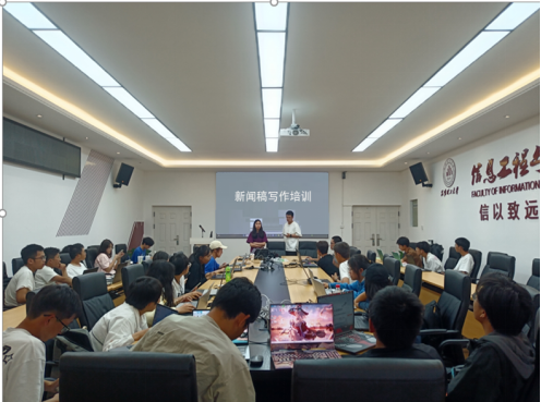 、人工智能产业学院新闻宣传队伍的建设,提高新闻宣传者的工作能力。2023年5月11日,信自学院团委宣传部于信自楼237会议室向学院部门社团宣传工作者开展新闻写作培训活动。本次培训活动由信自学院团委宣传部副部长邱爽主讲,学院各部门社团宣传工作者参与培训。