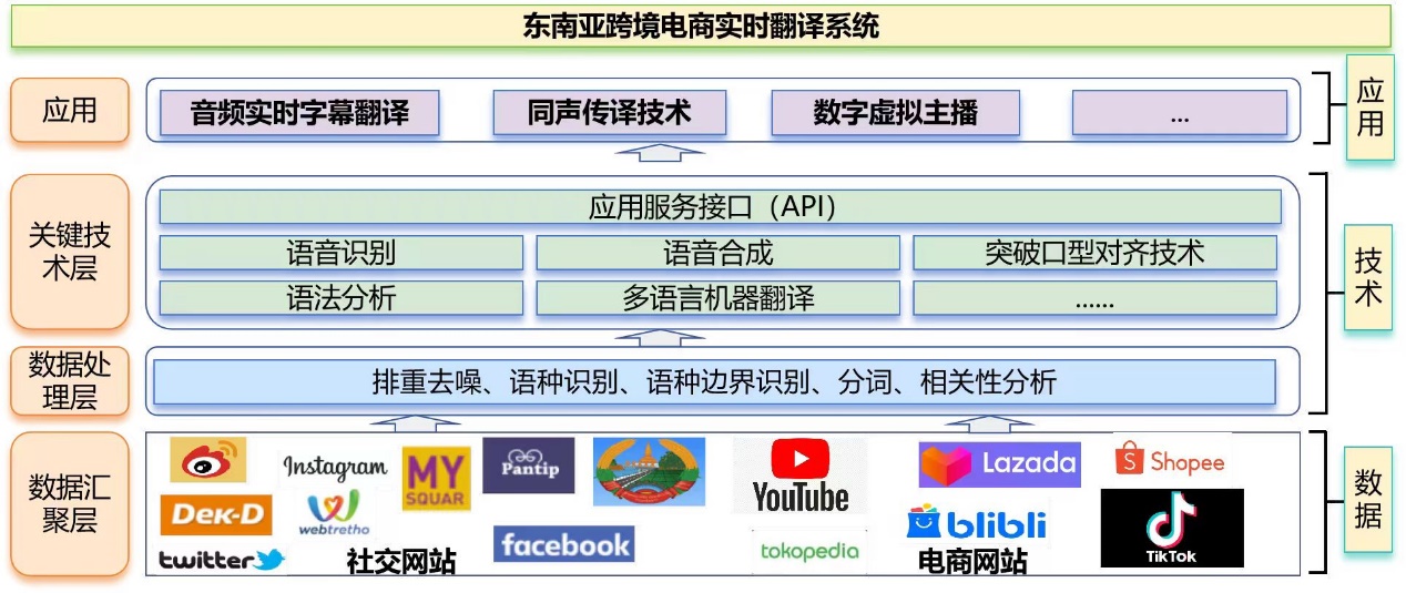 本项目推出了一种面向东南亚跨境电商的实时翻译系统,旨在加速电商以及跨境交流发展。随着全球经济一体化的深入发展,中国与东南亚国家的贸易合作愈发紧密。2020年起,中国与东盟互为最大的贸易合作伙伴。并且在区域全面经济伙伴关系协议(RCEP)的框架下,中国与东盟国家的经济交流更加密切。一带一路,语言铺路,语言障碍成为面向东南亚跨境电商的痛点问题。本团队旨在解决东南亚电商领域的困境,依托云南省人工智能重点实验室进行系统设计、模型构建等工作,团队拥有丰富的人才资源,涵盖博士、硕士类人才以及东南亚语言类人才15名,团队已申请12项发明专利,发表国内外顶级期刊、会议论文14篇。